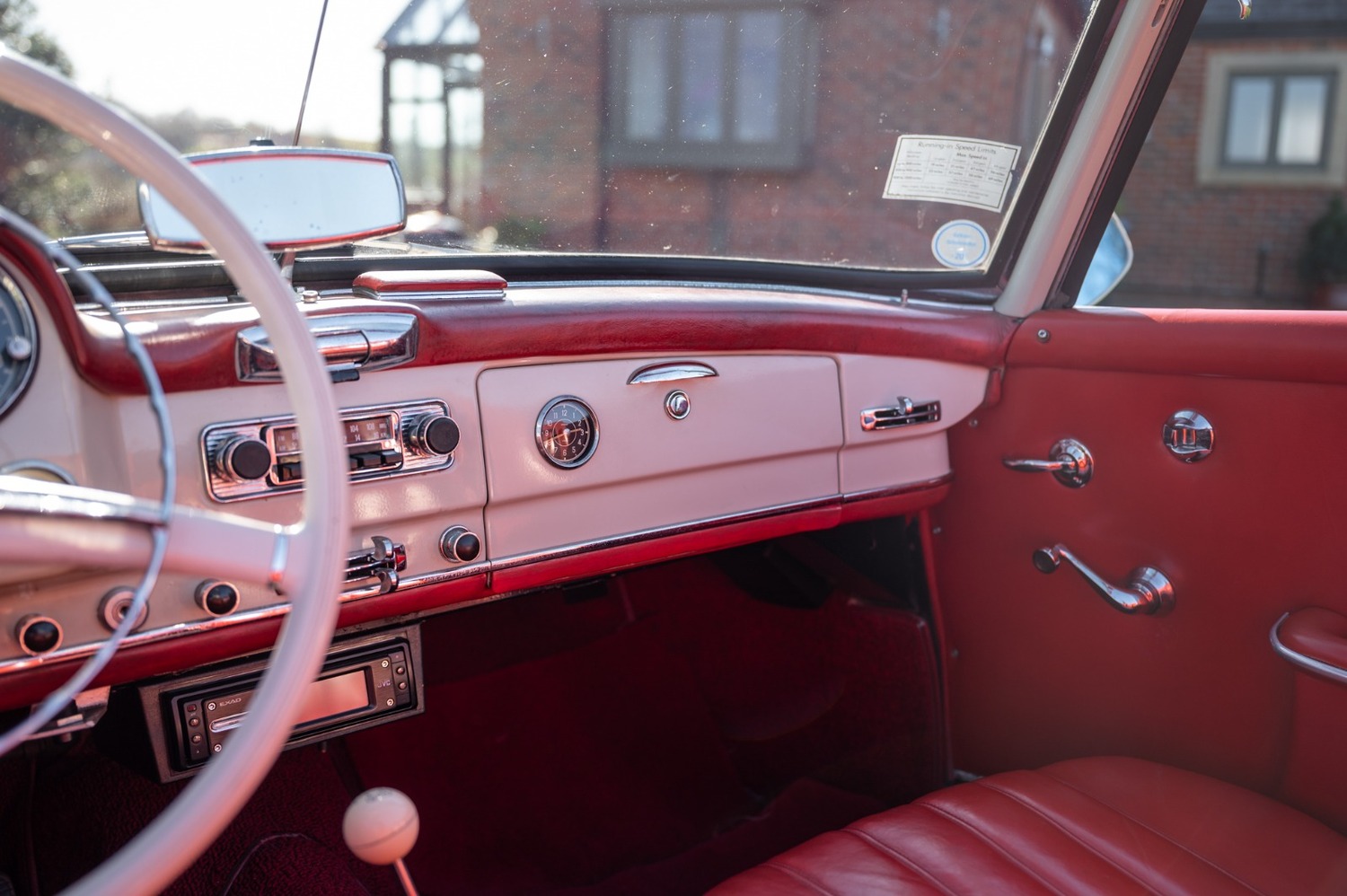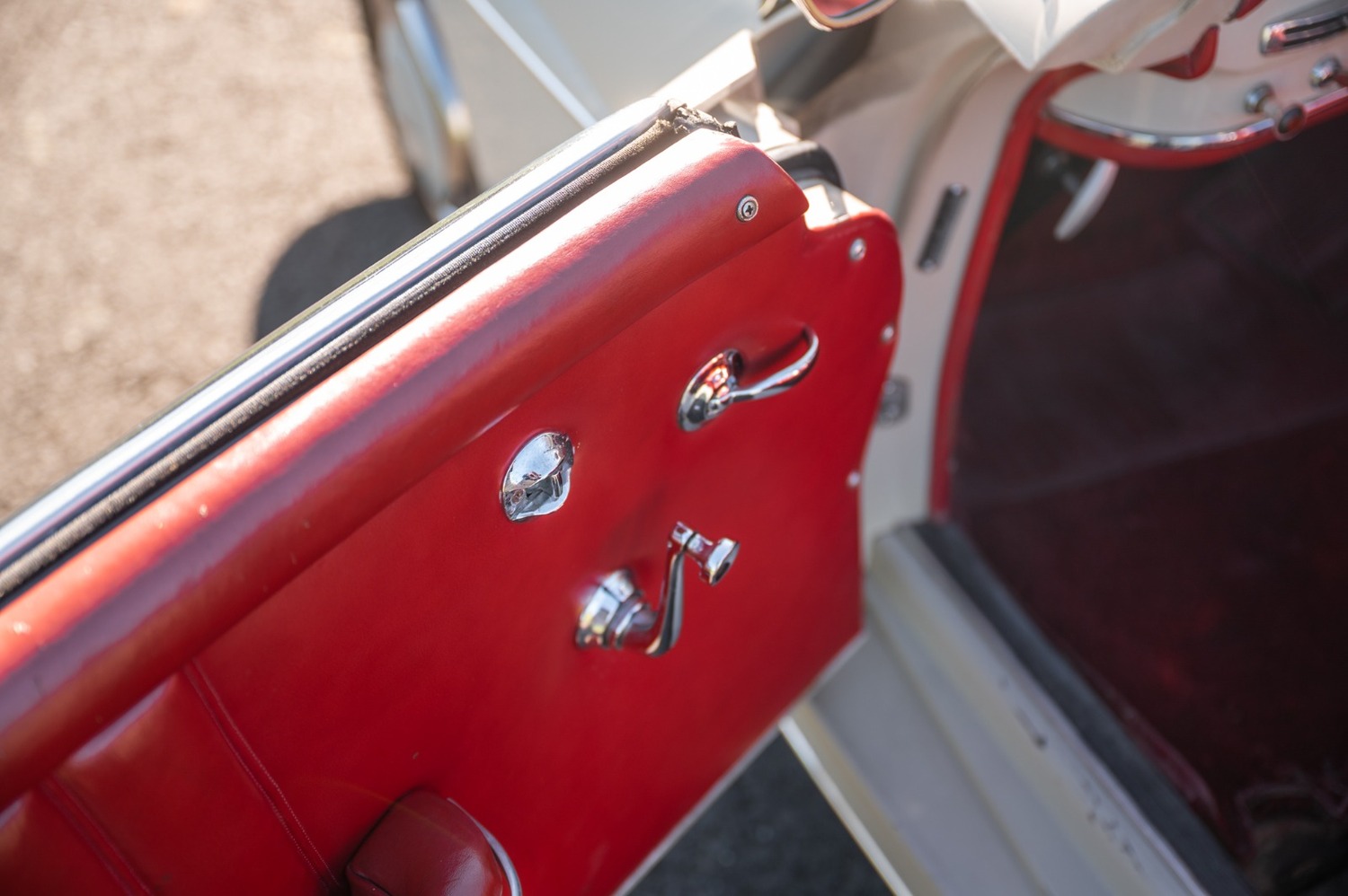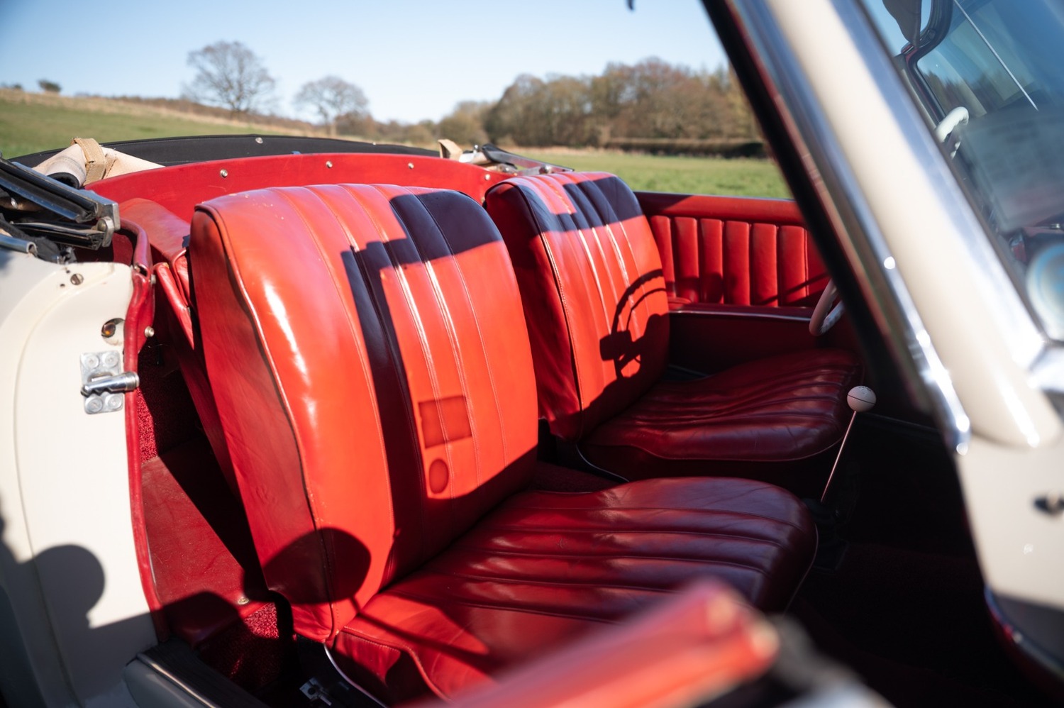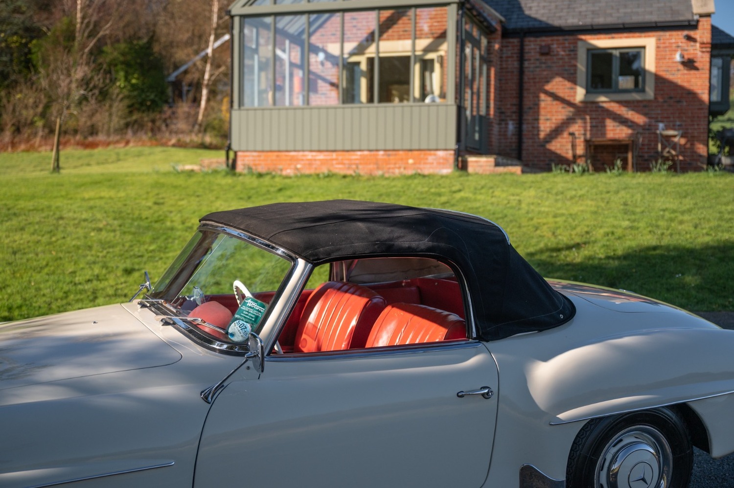 It is finished in cream with red leather interior.