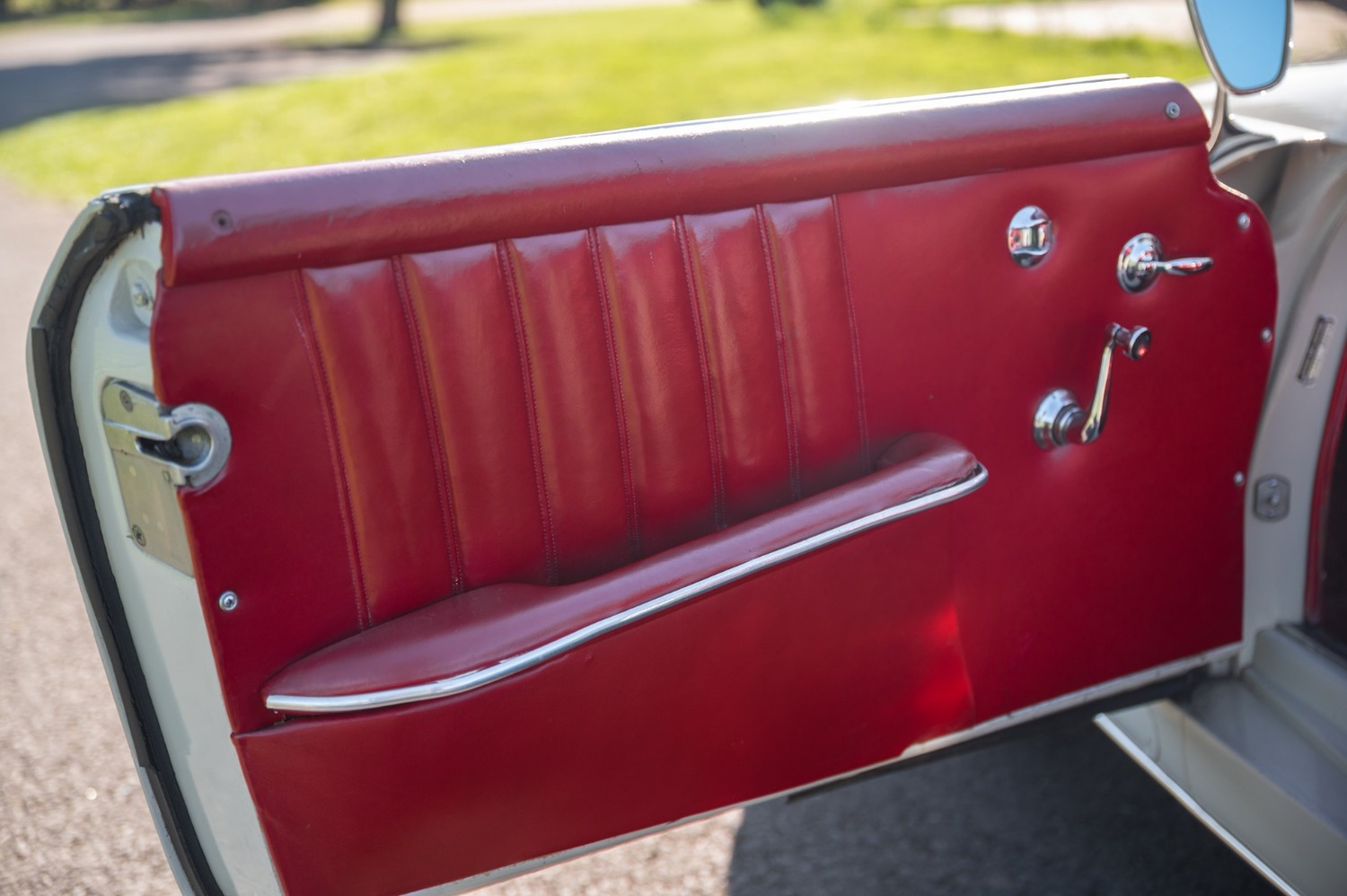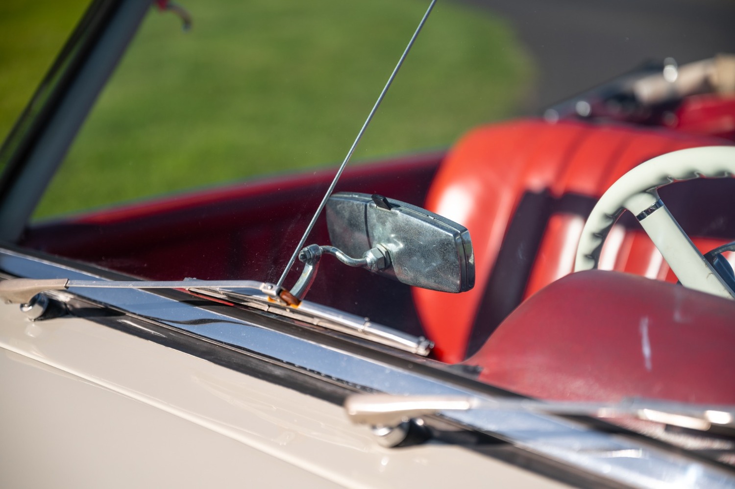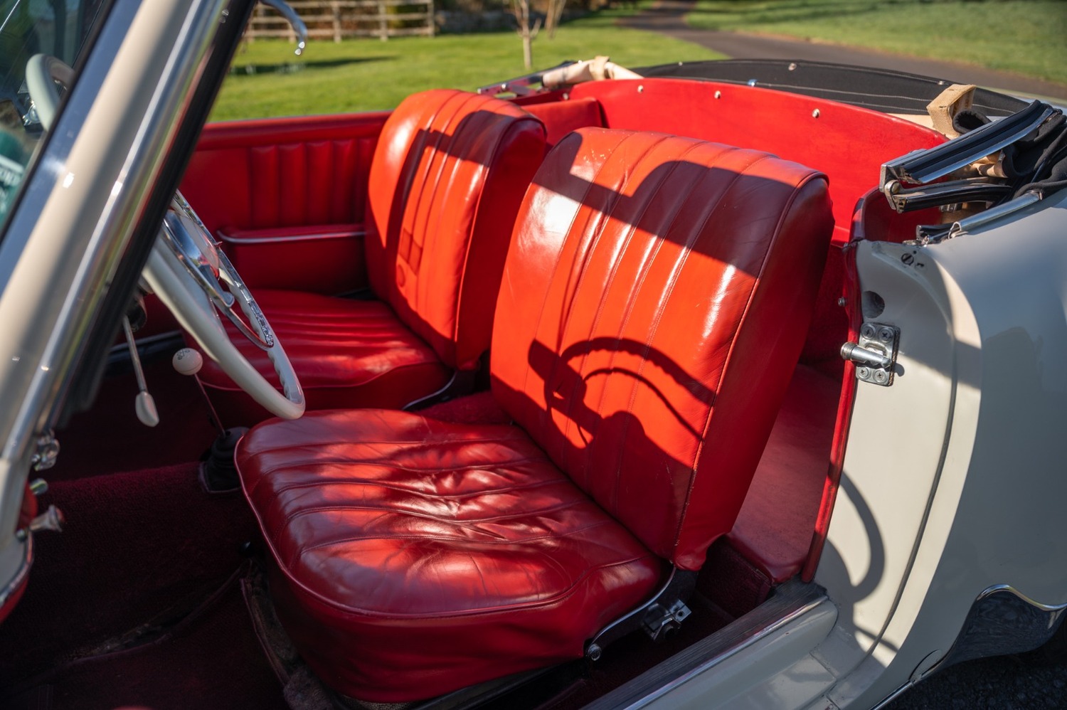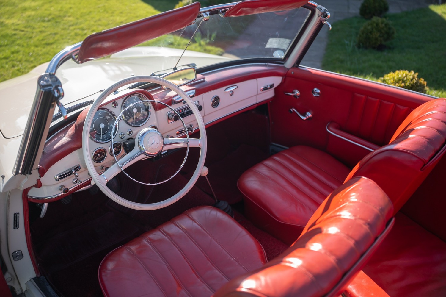 It is finished in cream with red leather interior.