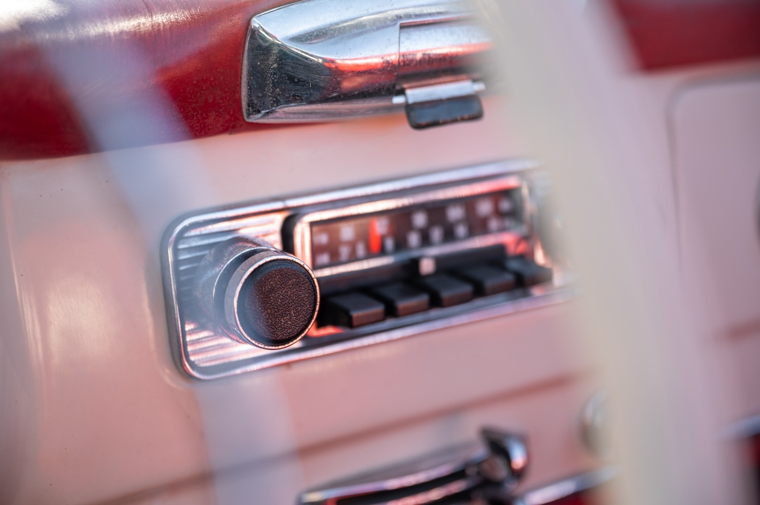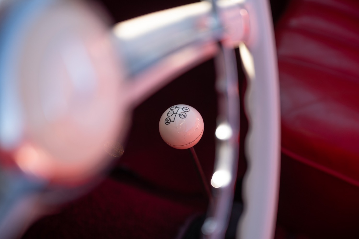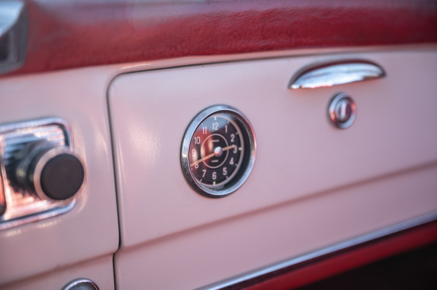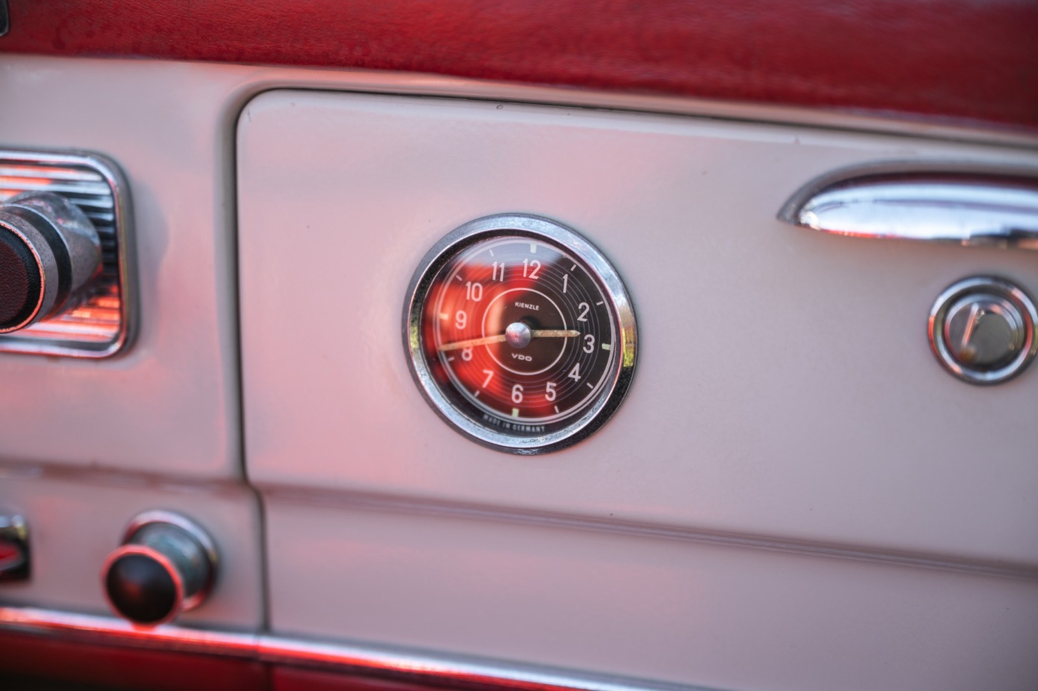 It is finished in cream with red leather interior.