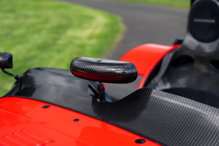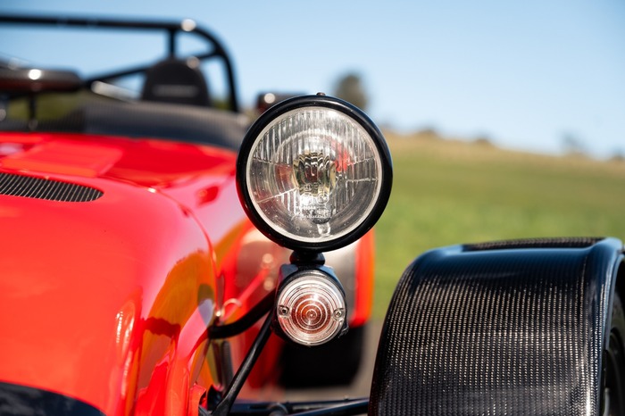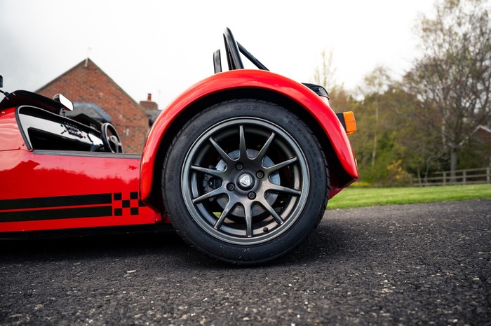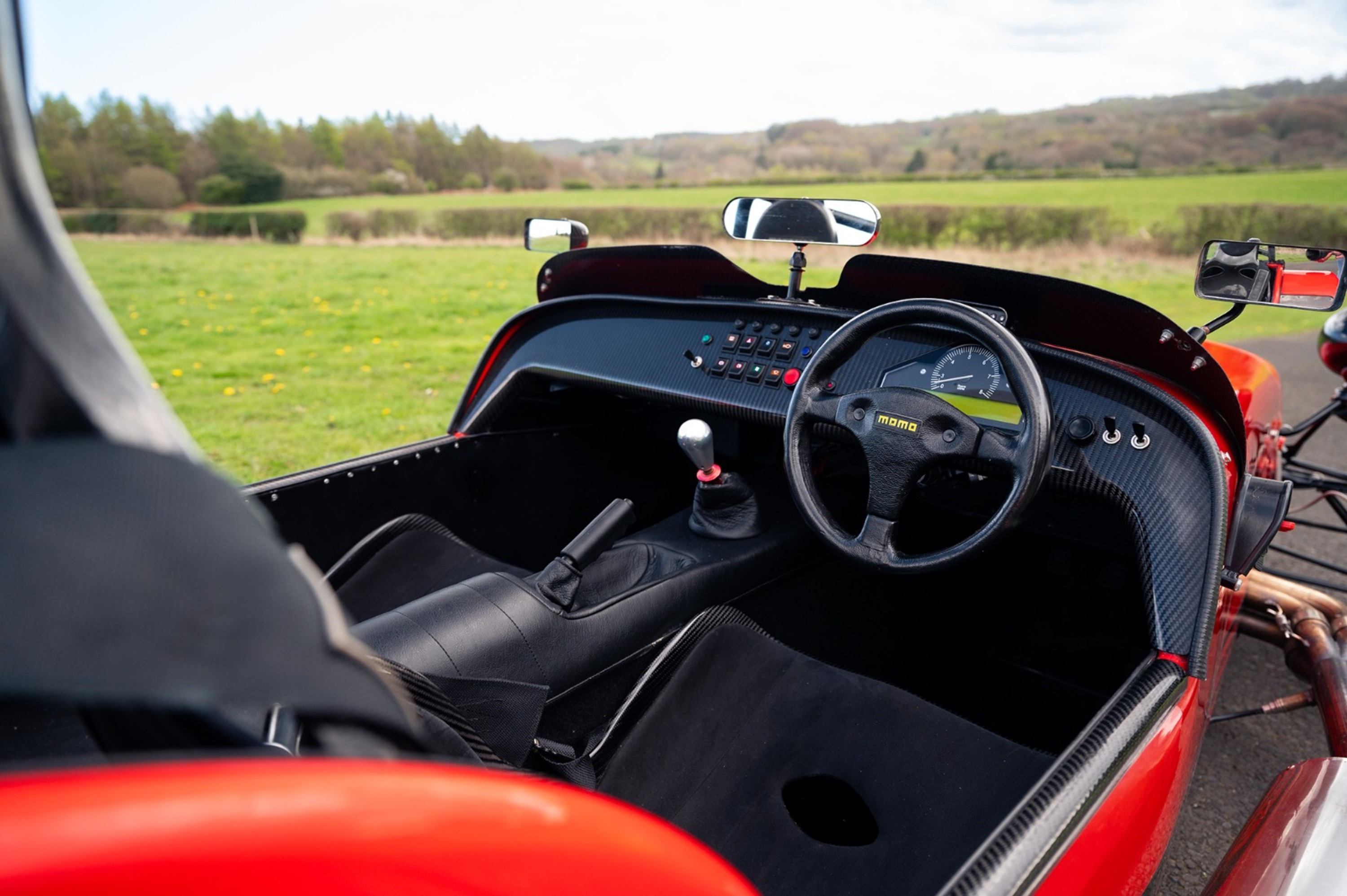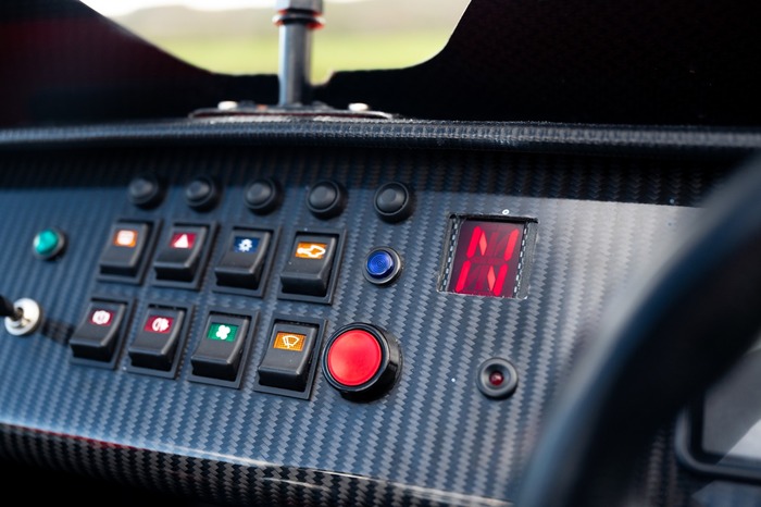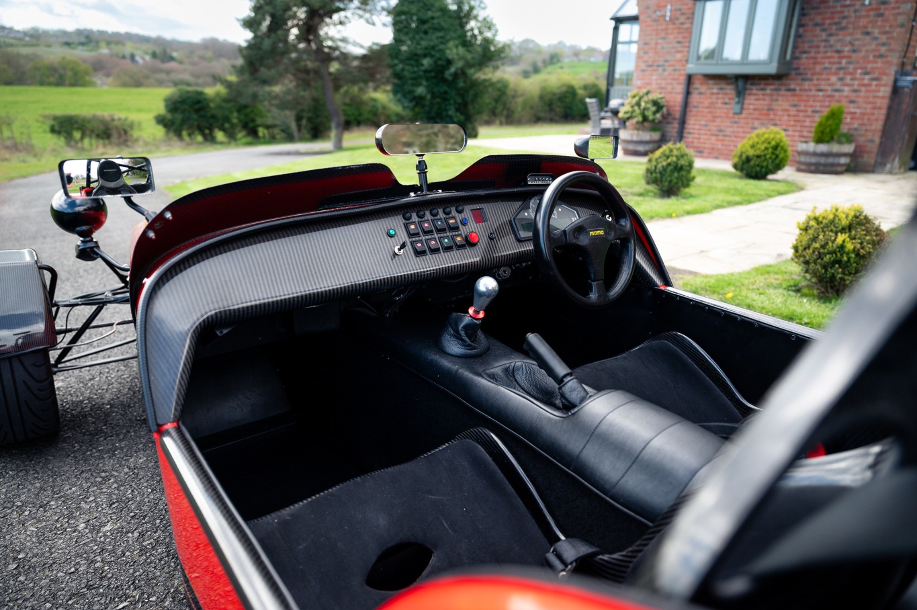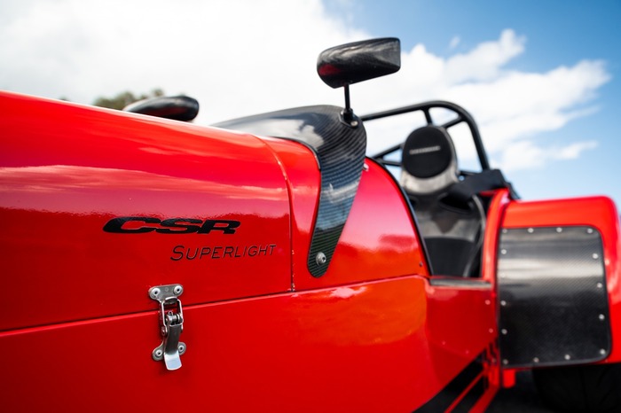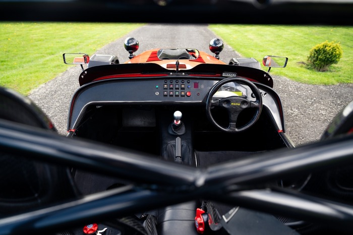 For the exterior the Superlight came enhanced with a wind deflector, a carbon fibre dashboard and wings, a black powder coated cockpit, quick release MOMO steering wheel and 'black pack' that disguises otherwise aluminium detailing.