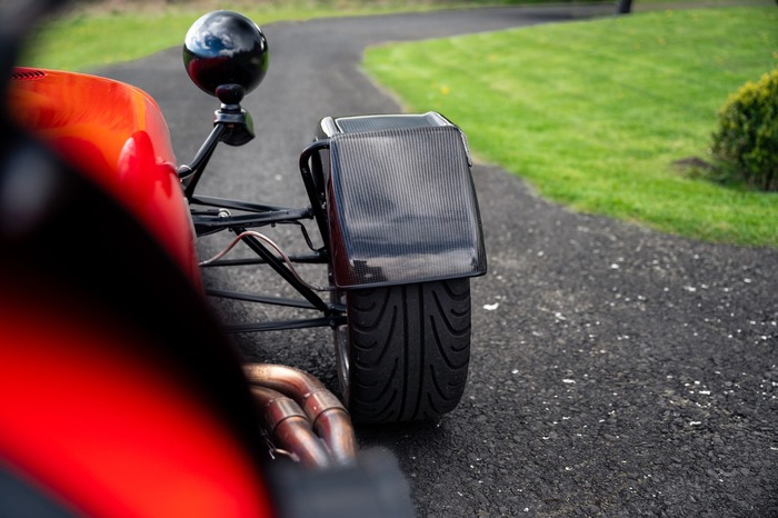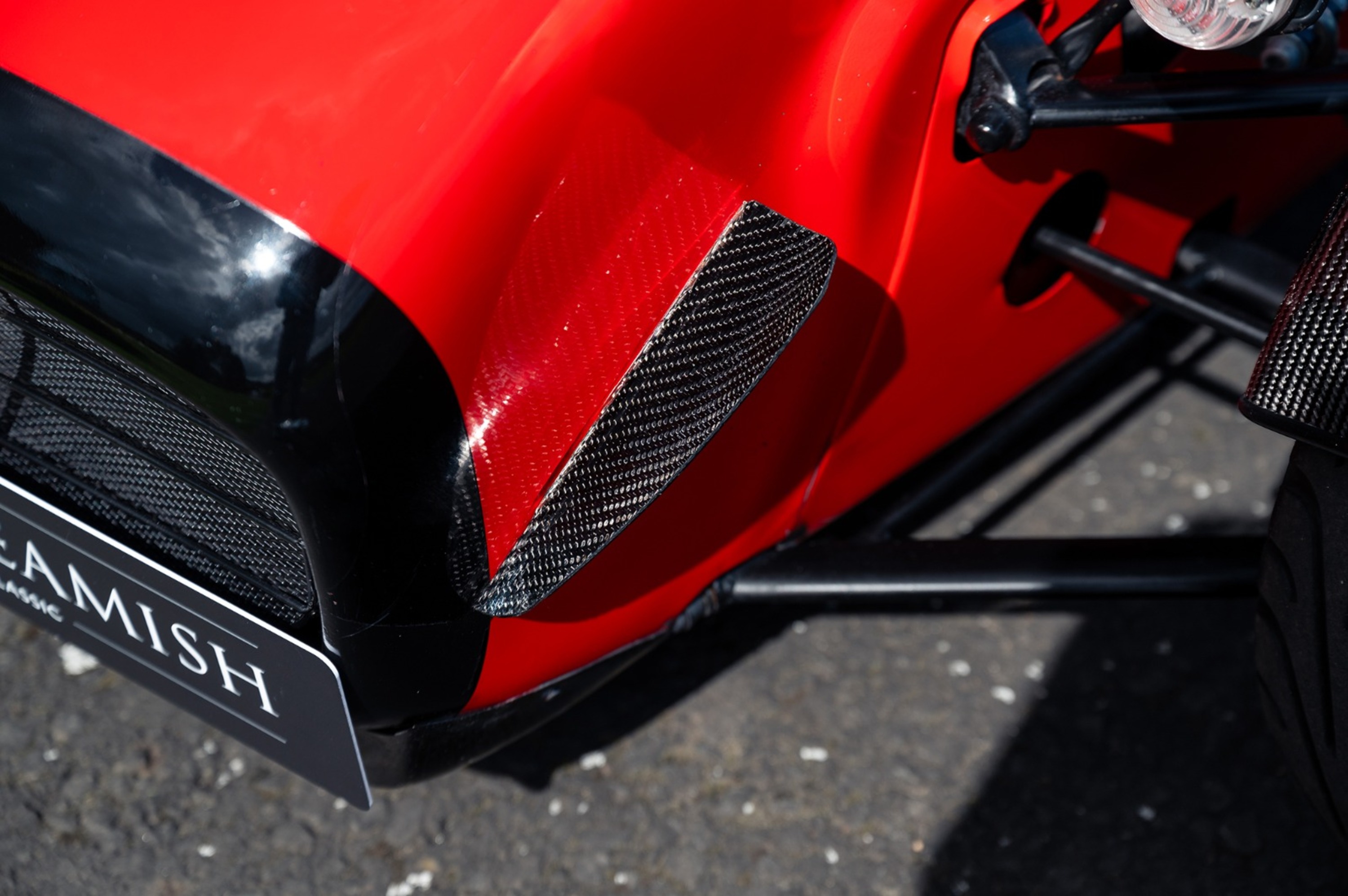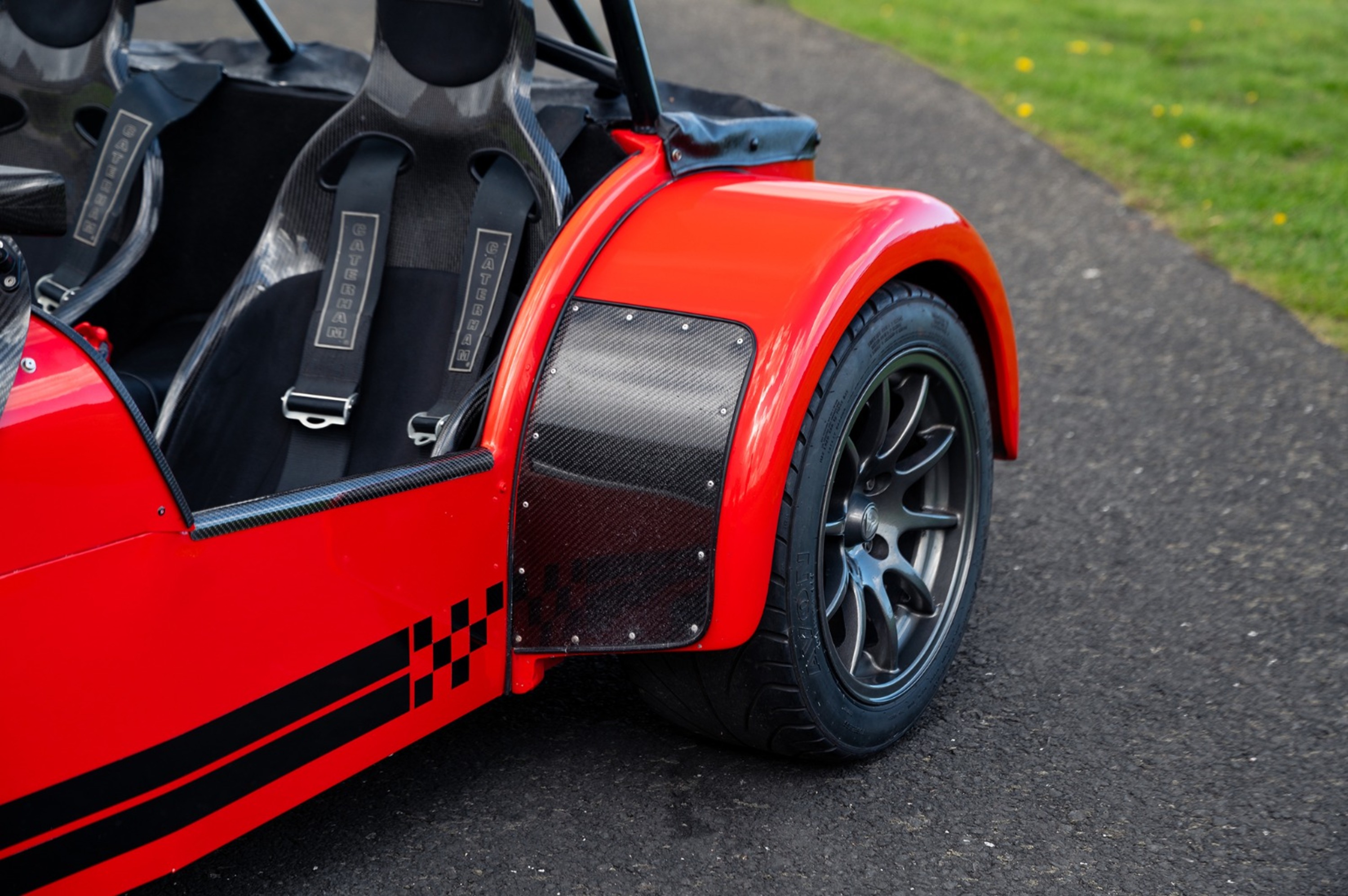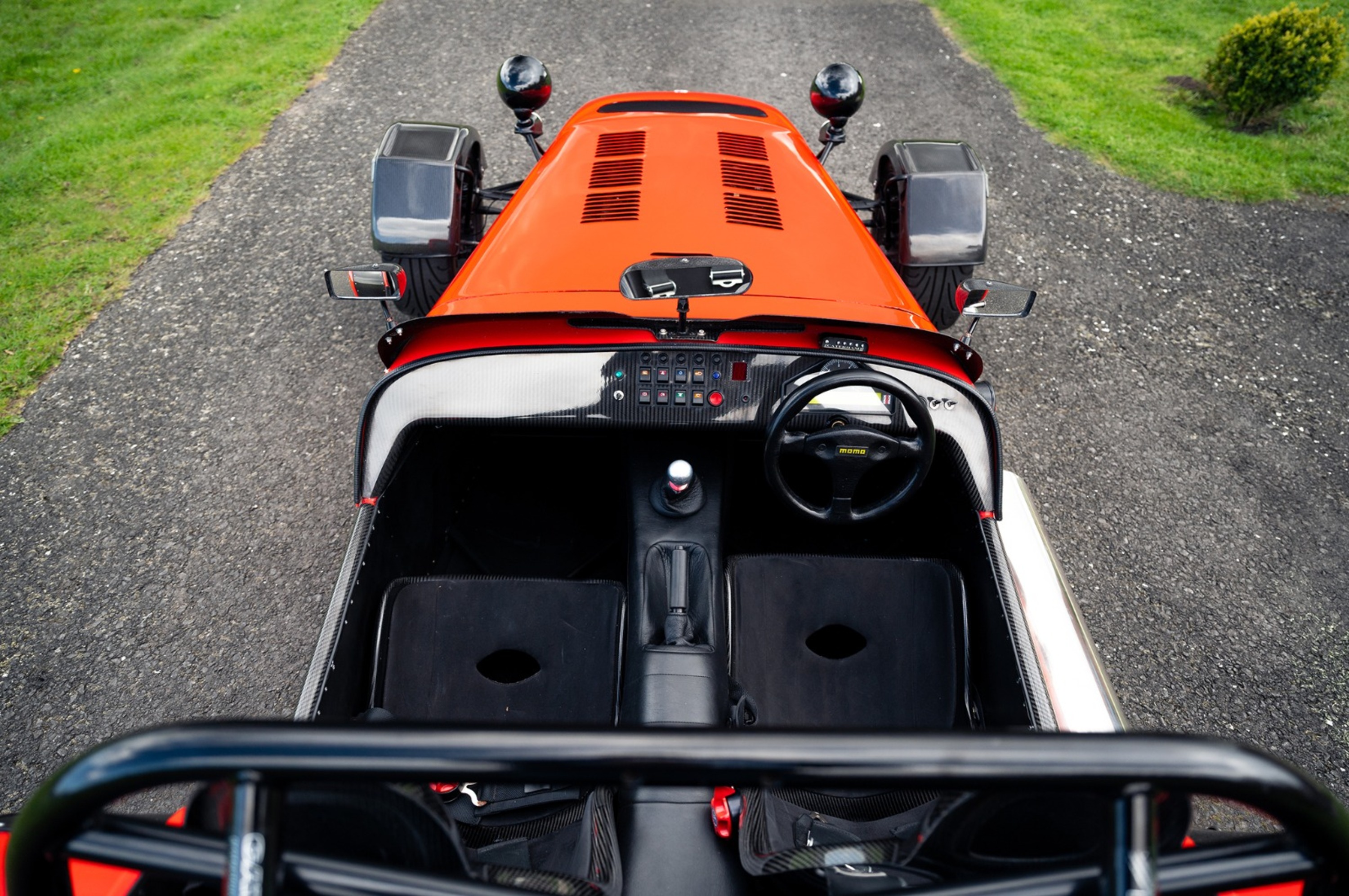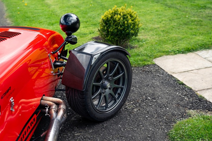 For the exterior the Superlight came enhanced with a wind deflector, a carbon fibre dashboard and wings, a black powder coated cockpit, quick release MOMO steering wheel and 'black pack' that disguises otherwise aluminium detailing.