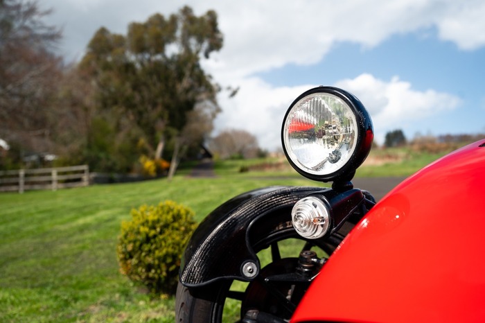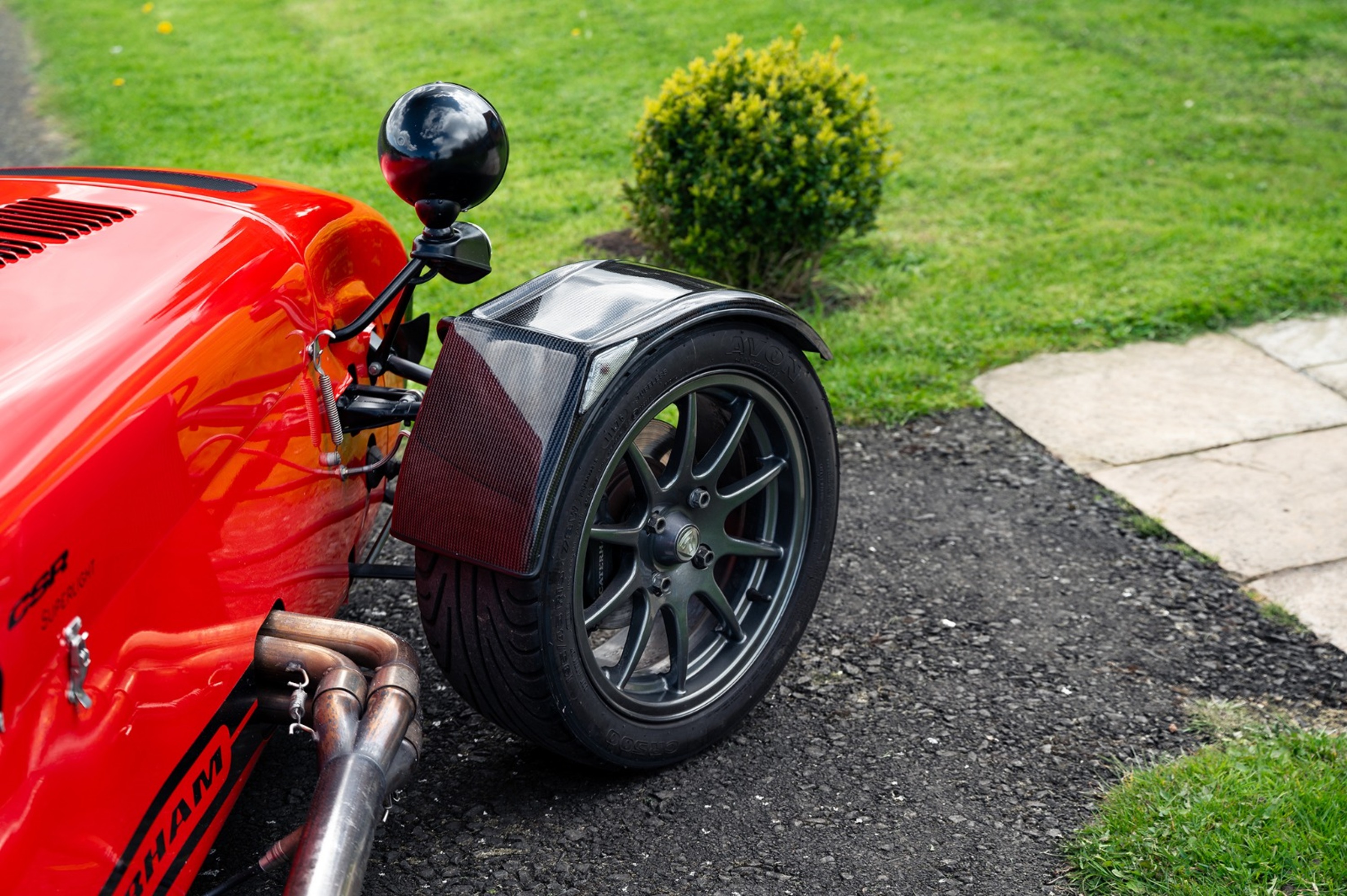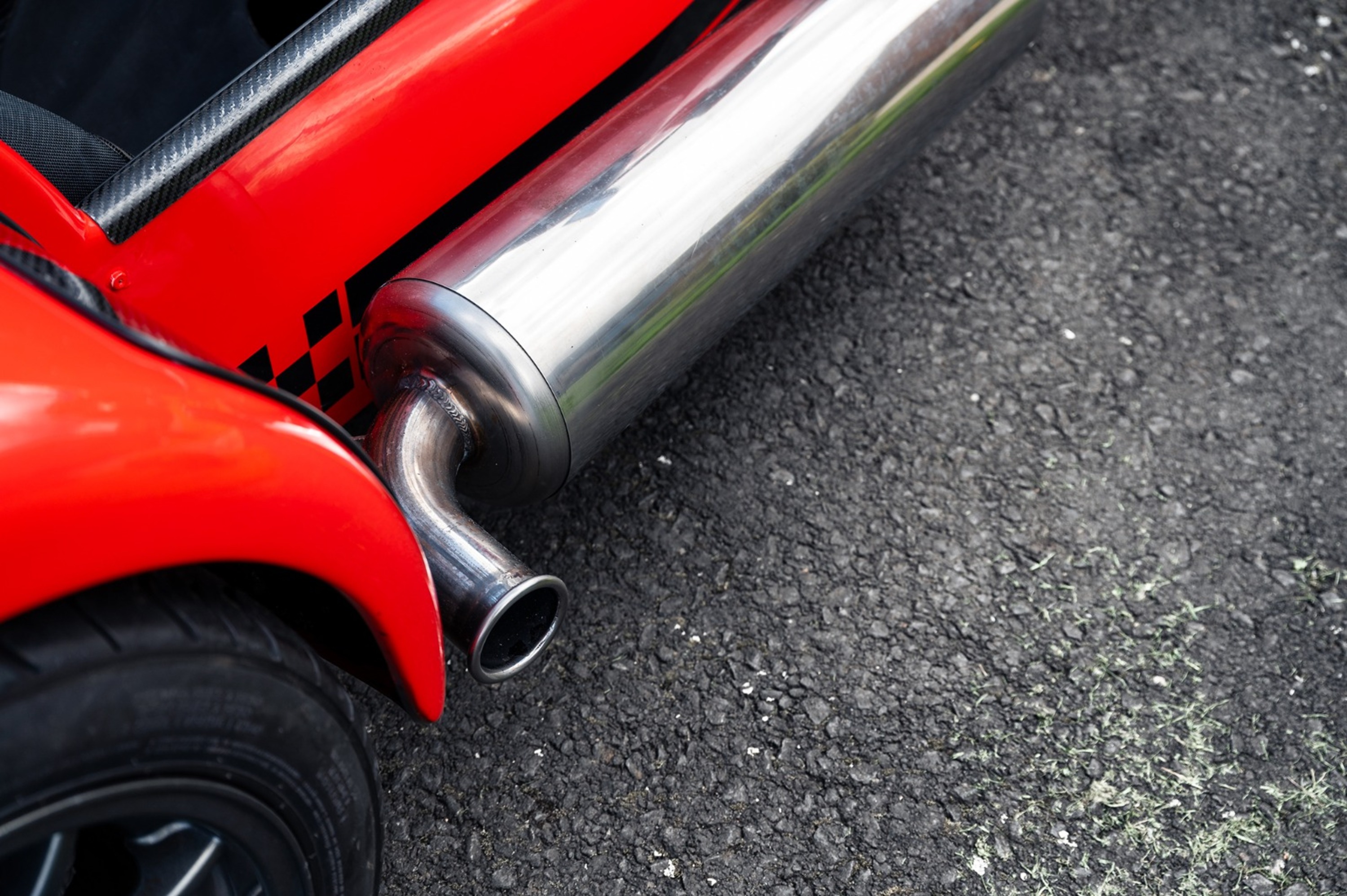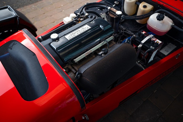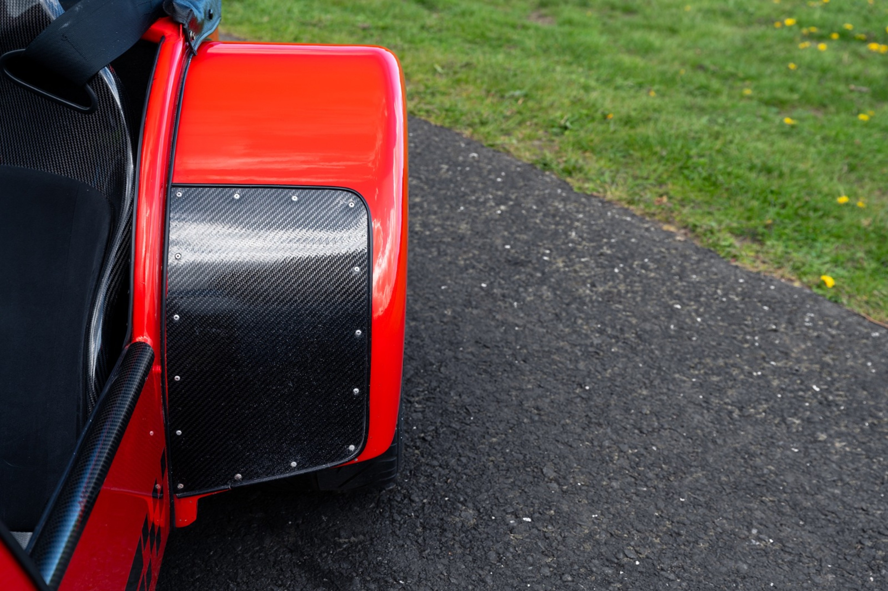 For the exterior the Superlight came enhanced with a wind deflector, a carbon fibre dashboard and wings, a black powder coated cockpit, quick release MOMO steering wheel and 'black pack' that disguises otherwise aluminium detailing.