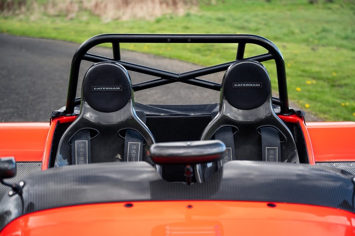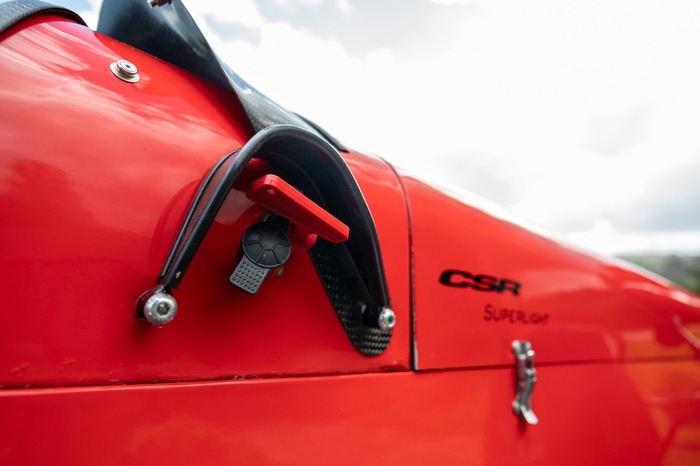 'This is a very very rare Caterham. The factory made just over 20 Superlight CSRs and it's great to have one in the showroom. It's fitted with the sequential gearbox which is great fun and really suits the character of the car. The engine is a real firecracker, it certainly has a turn of speed and the induction noise is superb!'